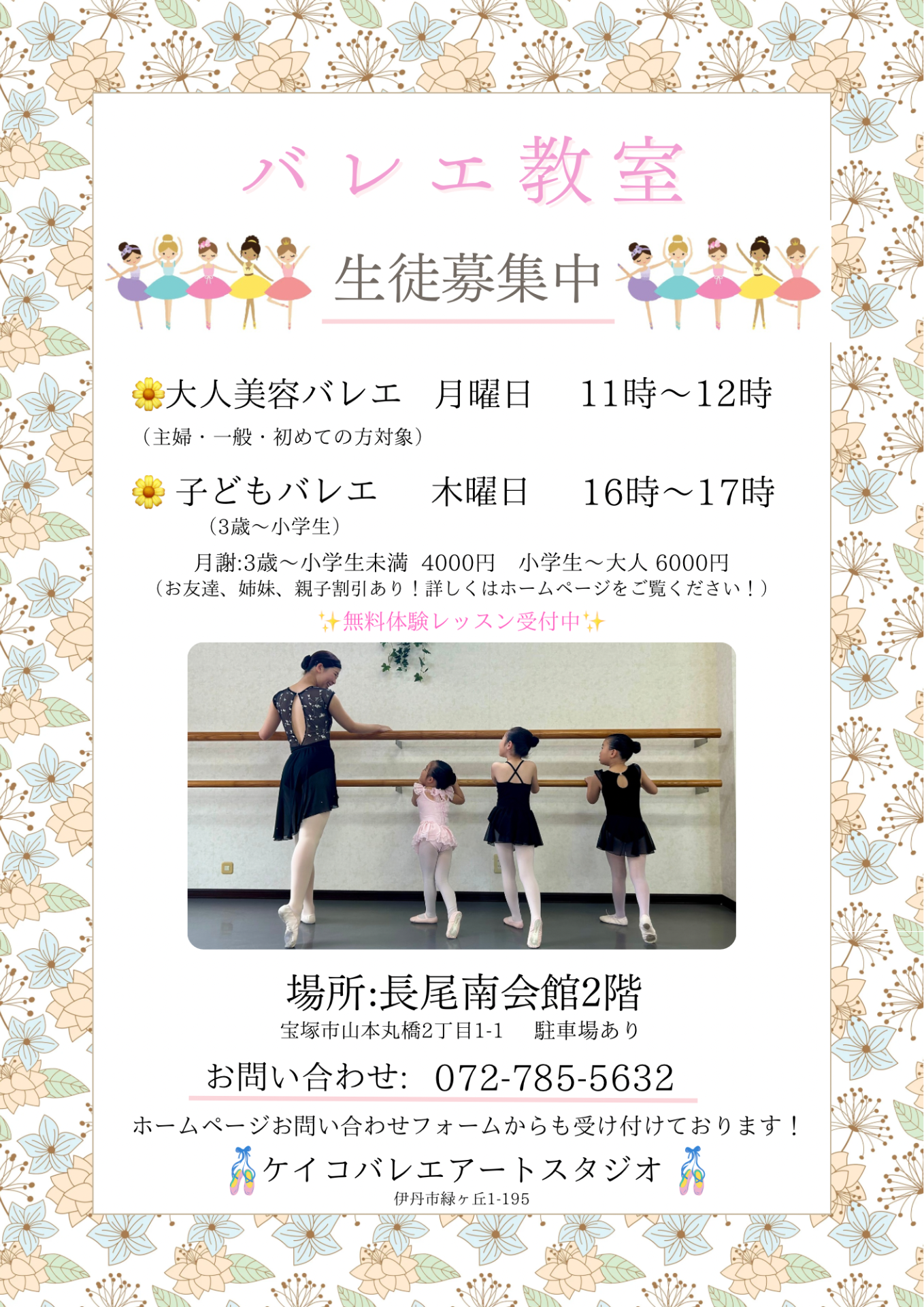 2025年9月から宝塚市の長尾南会館で大人美容バレエ、子どもバレエクラスをオープンします🩰